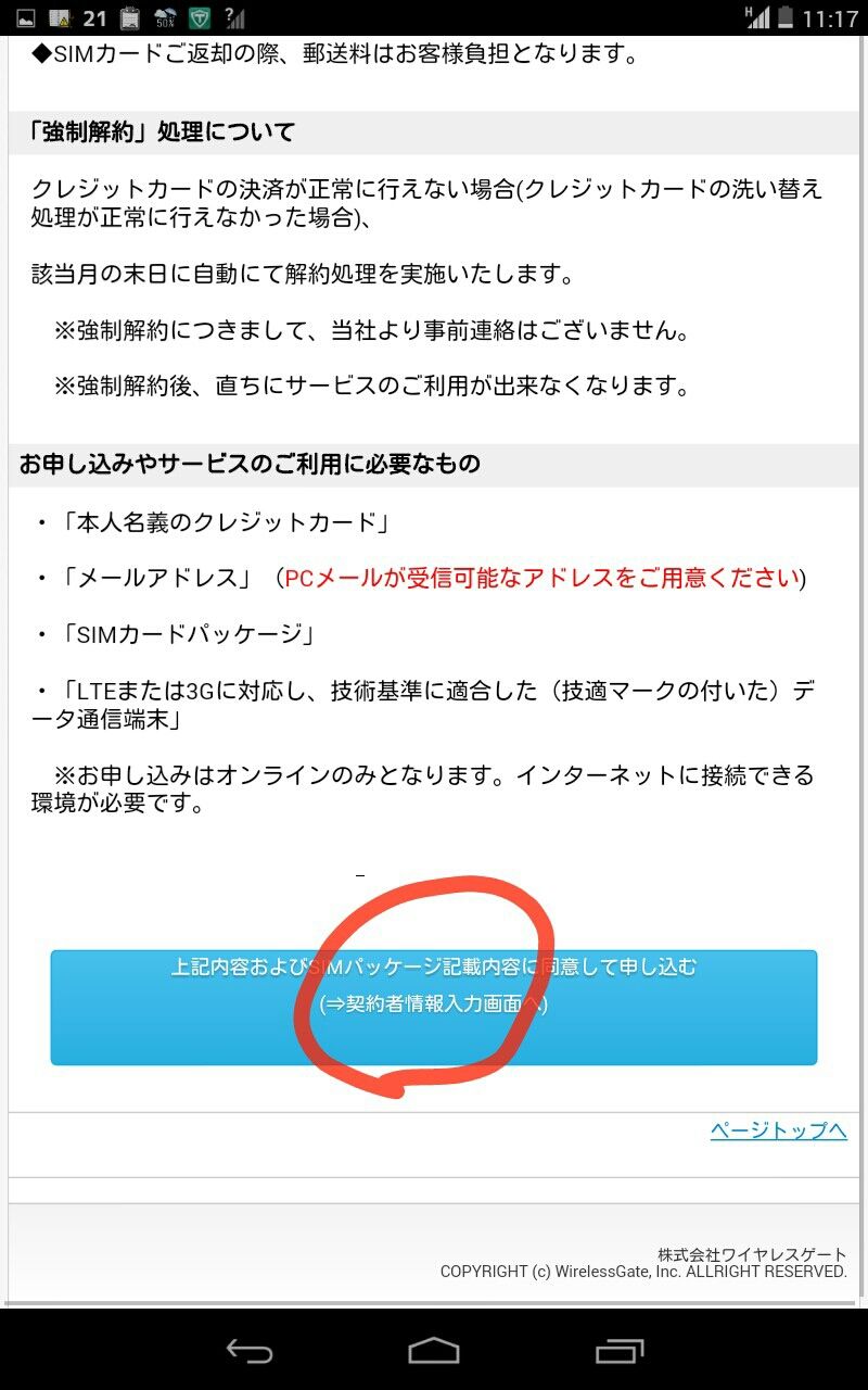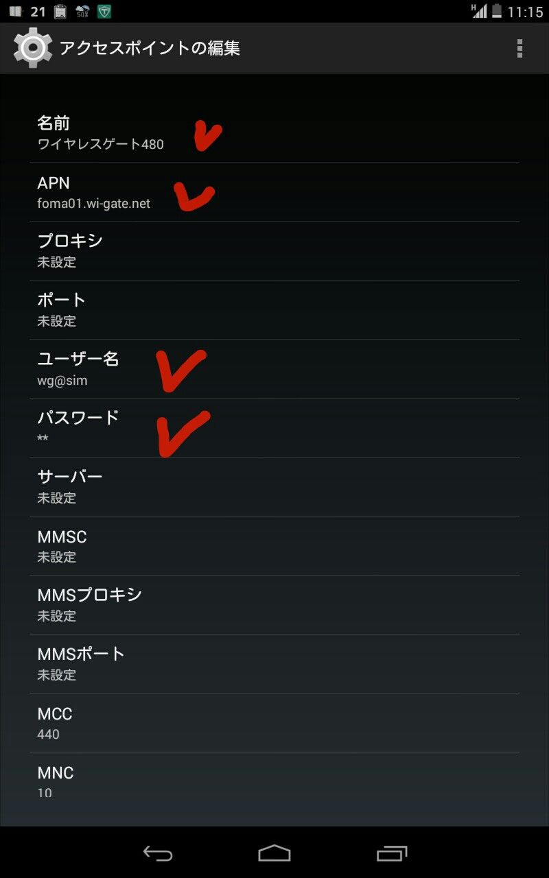 ワイヤレスゲートのホームページで案内されてるAPN情報は下記の通り。