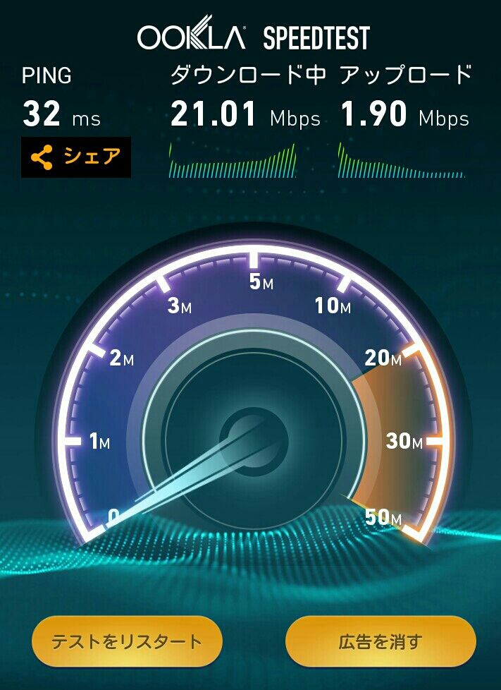 スピードテストしたものの、何がどうってよくわかりませんけど、2mbpsあれば動画とかも普通に使えると詳しい人に教わりました。